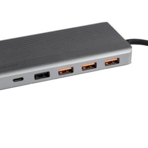 هاب POWEROLOGY 13 IN 1 DUAL HDMI & DP 4K USB-C HUB ETHERNET هابی ۱۳ در ۱ با خروجی 4K است. این محصول برای لپ‌تاپ مناسب است.