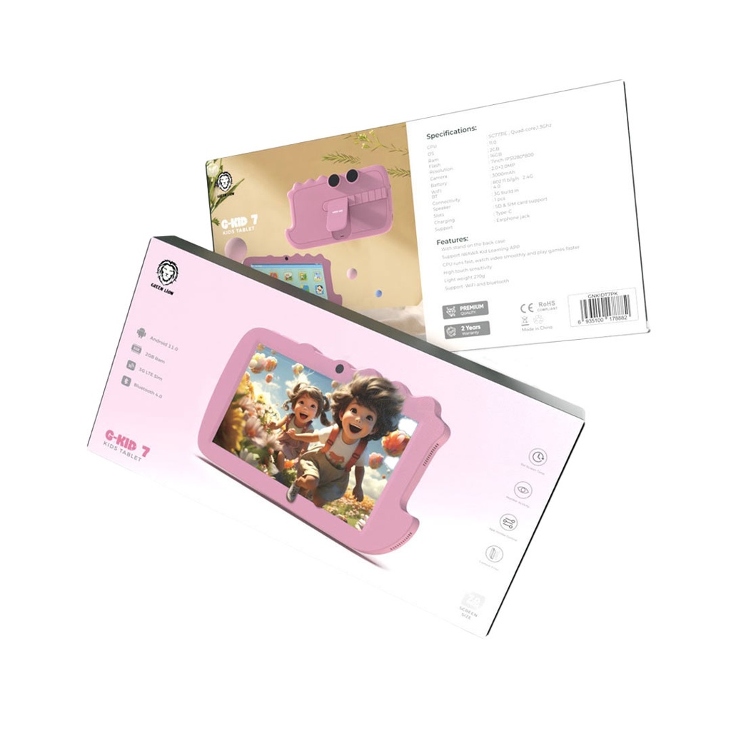 تبلت GREEN LION G-KID 7 تبلتی با طراحی مخصوص کودکان و برنامه‌های آموزشی پیش‌فرض است. این محصول با صفحه نمایش مقاوم برای استفاده ایمن طراحی شده است.