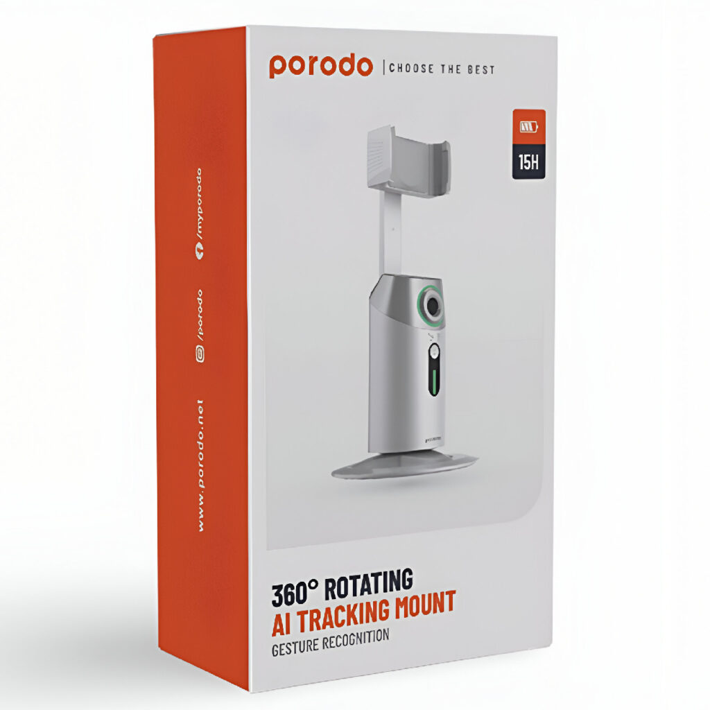 استند Porodo 360 Rotating AI Tracking Mount استندی هوشمند با چرخش ۳۶۰ درجه و ردیابی خودکار با هوش مصنوعی برای فیلمبرداری و تماسهای ویدیویی است. این محصول برای تولید محتوا ایدهآل است.