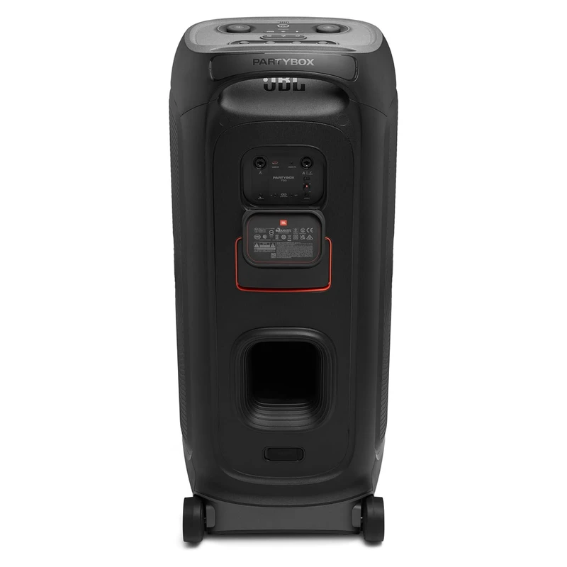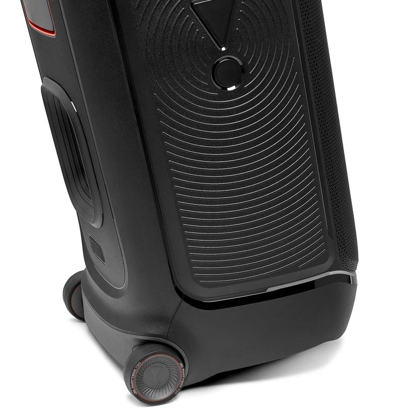 اسپیکر بلوتوثی جی بی ال PartyBox 720، بزرگترین اسپیکر باتریدار این برند است که با توان خروجی 800 وات RMS، دو ووفر 9 اینچی و توییترهای دقیق، صدای JBL Pro Sound قدرتمند با بیس عمیق و شفاف ارائه میدهد. این اسپیکر با باتری قابل تعویض (تا 15 ساعت پخش)، طراحی چرخدار و دسته ارگونومیک برای حمل آسان، نورپردازی RGB پیشرفته (ستارهای، مسیرهای جریان و استروب)، ورودیهای دوگانه XLR برای میکروفون و گیتار، کارائوکه کامل، و قابلیت TWS/Auracast برای اتصال چندین اسپیکر، تجربه پارتی حرفهای را در داخل یا خارج خانه فراهم میکند. مقاومت IPX4 ضد پاشش آب، اپلیکیشن JBL PartyBox برای کنترل نور، صدا و افکت DJ، و AI Sound Boost برای بهینهسازی واقعیزمان صدا، این مدل را به گزینهای ایدئال برای مهمانیهای بزرگ تبدیل کرده است.