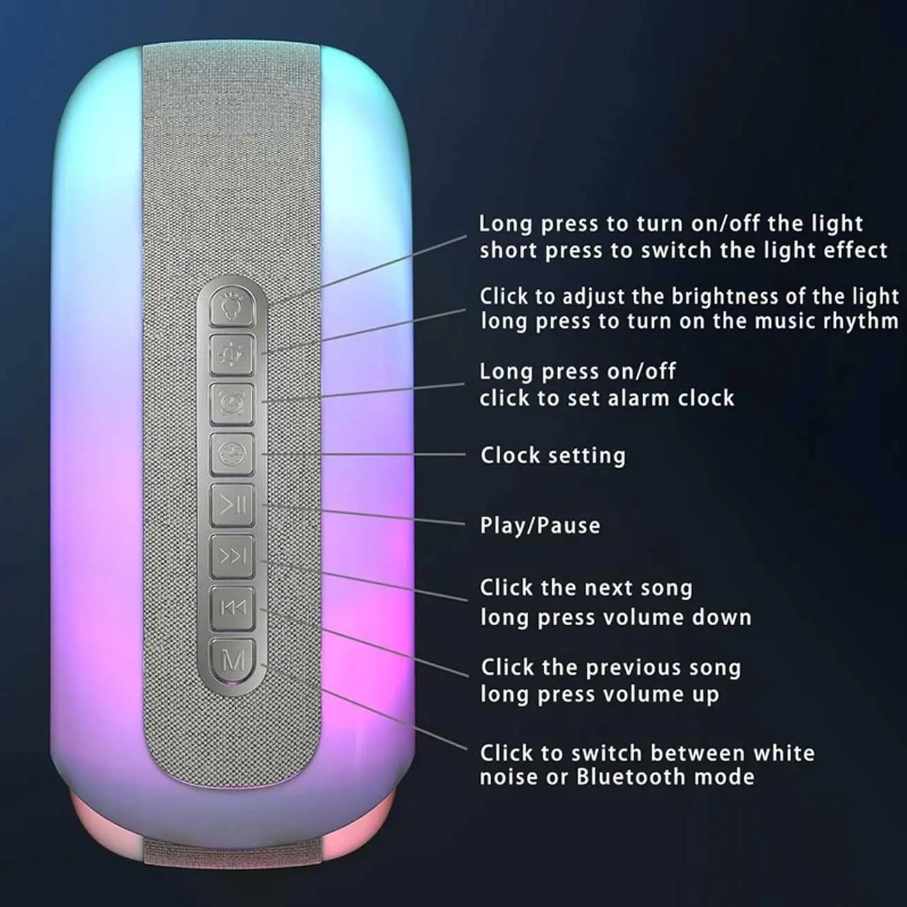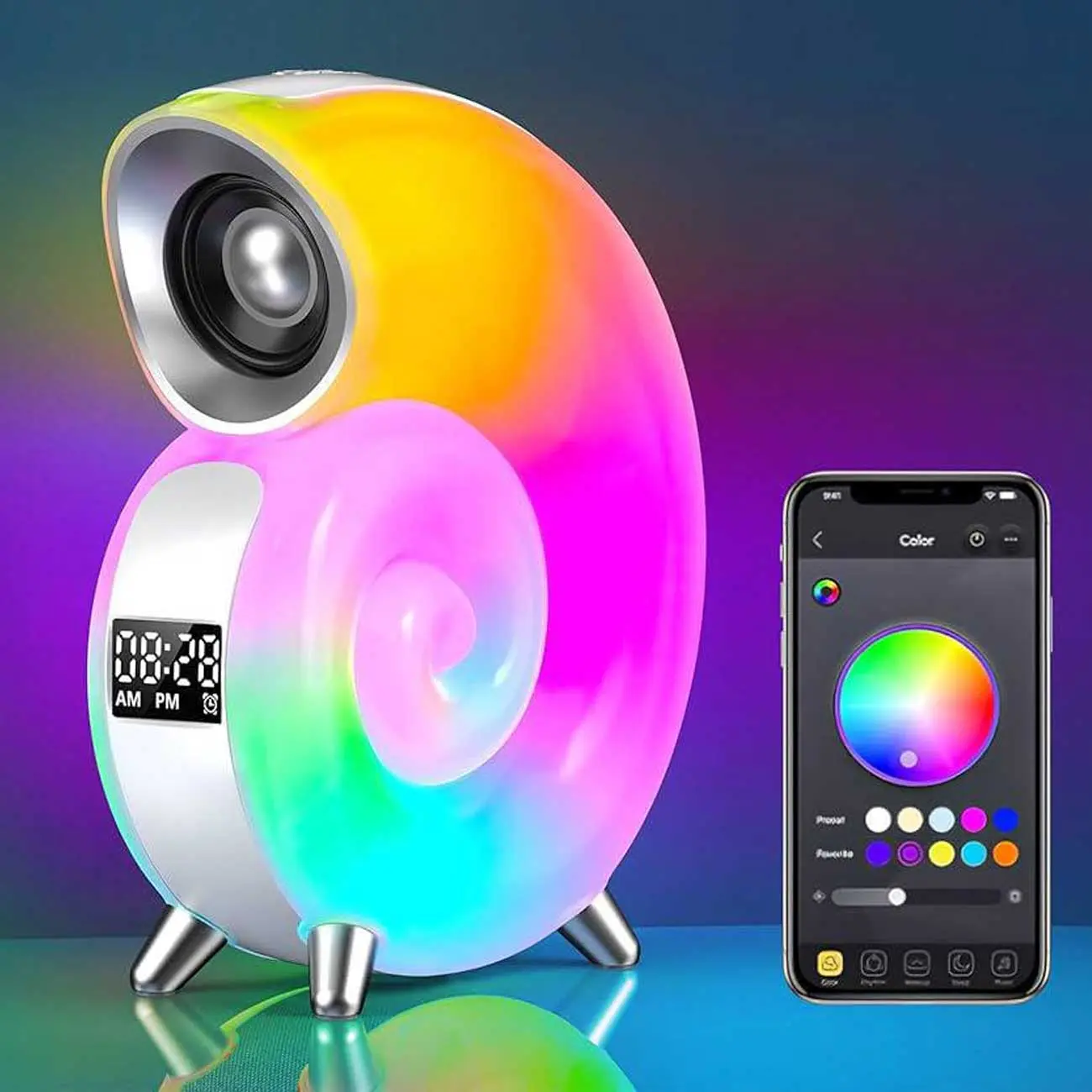 اسپیکر بلوتوثی شارژی حلزونی RGB دار – چراغخواب و ساعت زنگدار