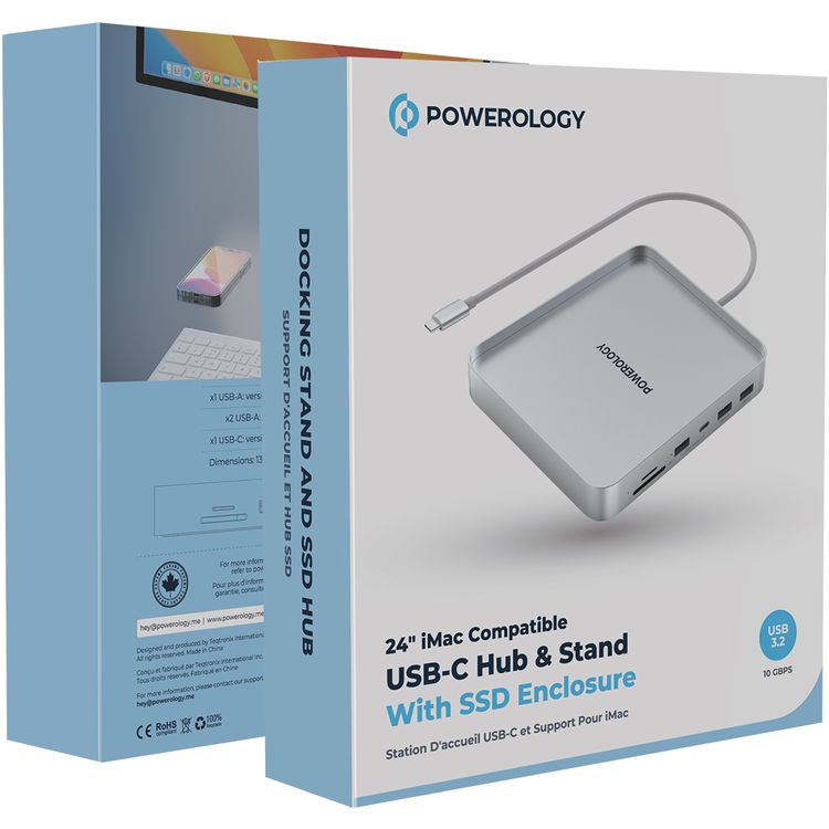 هاب و استند Powerology USB-C Hub & Stand With SSD Enclosure هابی USB-C با استند و محفظه SSD برای لپتاپ است. این محصول با قابلیتهای متعدد مناسب است.