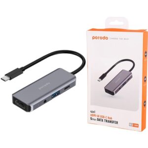 هاب Porodo 4In1 HDMI 4K USB-C Hub هابی ۴ در ۱ با خروجی 4K است. این محصول برای لپ‌تاپ مناسب است.
