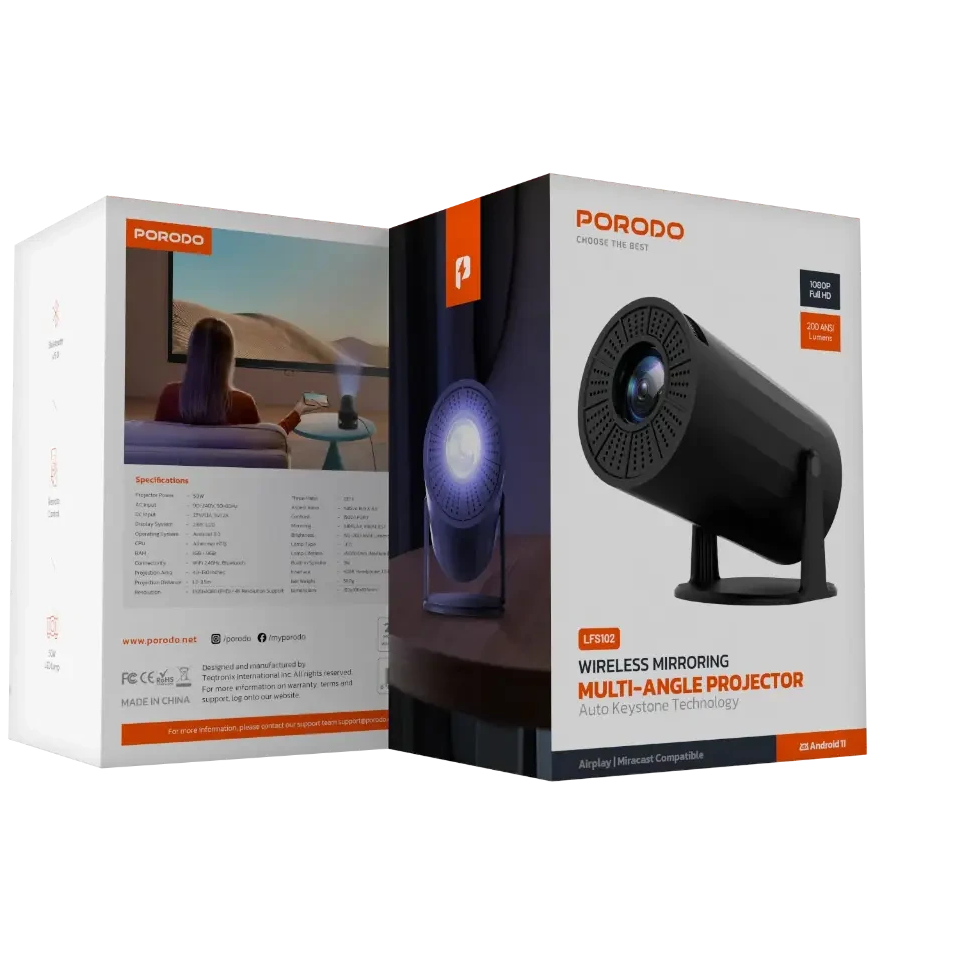 Porodo Wireless Mirroring Multi-Angle Projector