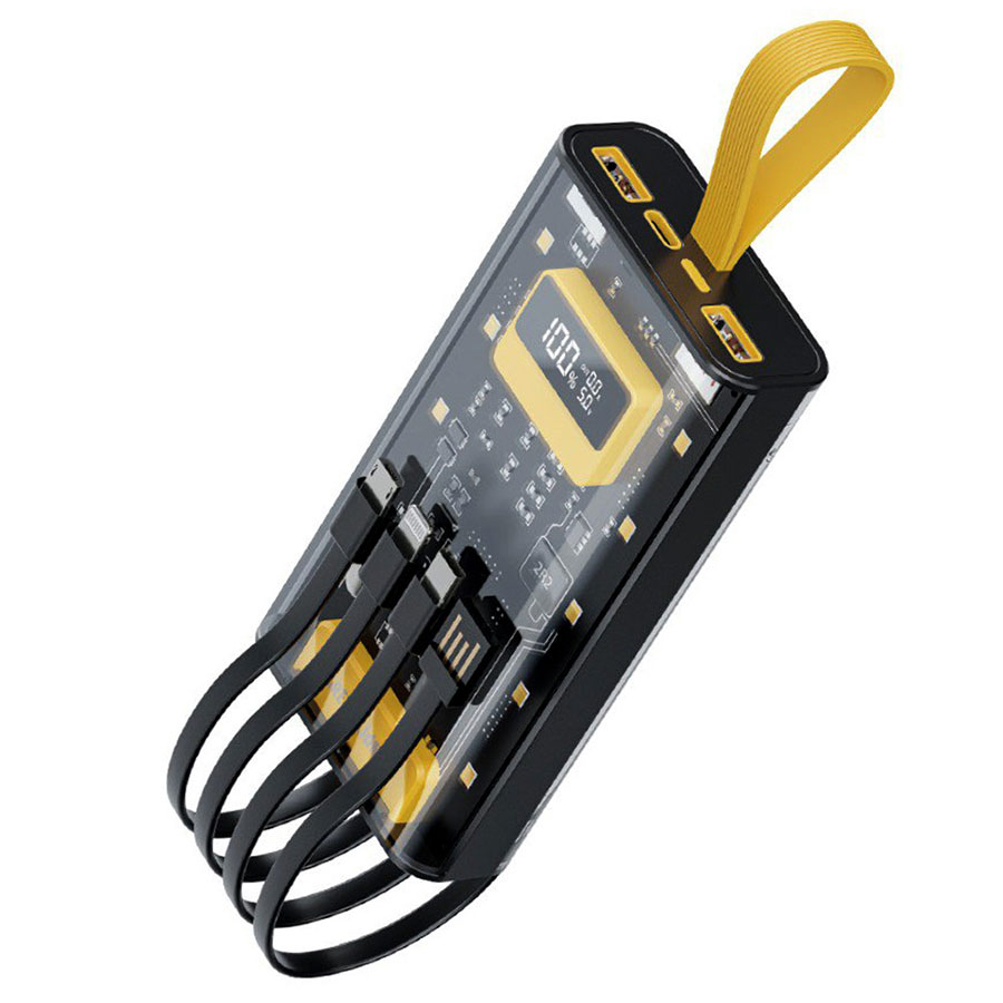 بدنه شفاف پاوربانک به آن ظاهر مدرن و متفاوت می‌بخشد و همزمان امکان مشاهده قطعات داخلی را فراهم می‌کند، که حس کیفیت و فناوری پیشرفته را القا می‌کند.