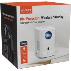 پروژکتور Porodo Mini Projector – Wireless Mirroring HD پروژکتوری کوچک با کیفیت تصویر HD و قابلیت آینهکاری بیسیم برای پخش فیلم و ارائهها است. این محصول با باتری داخلی برای استفاده قابل حمل ایدهآل است.
